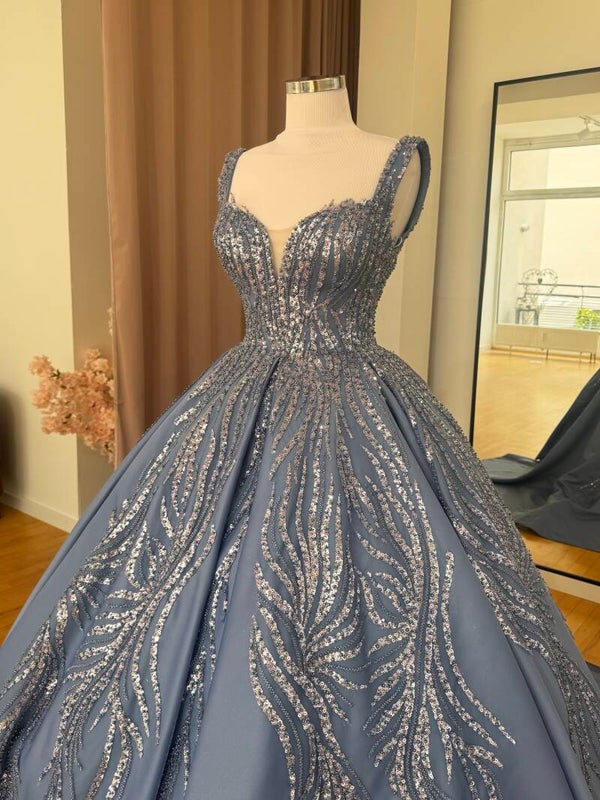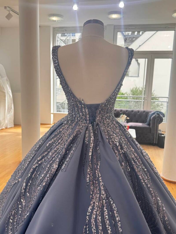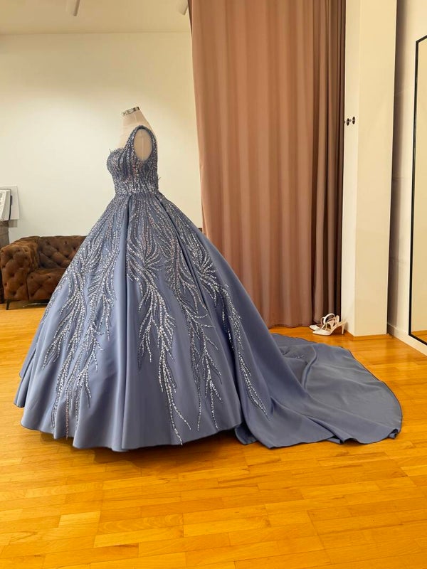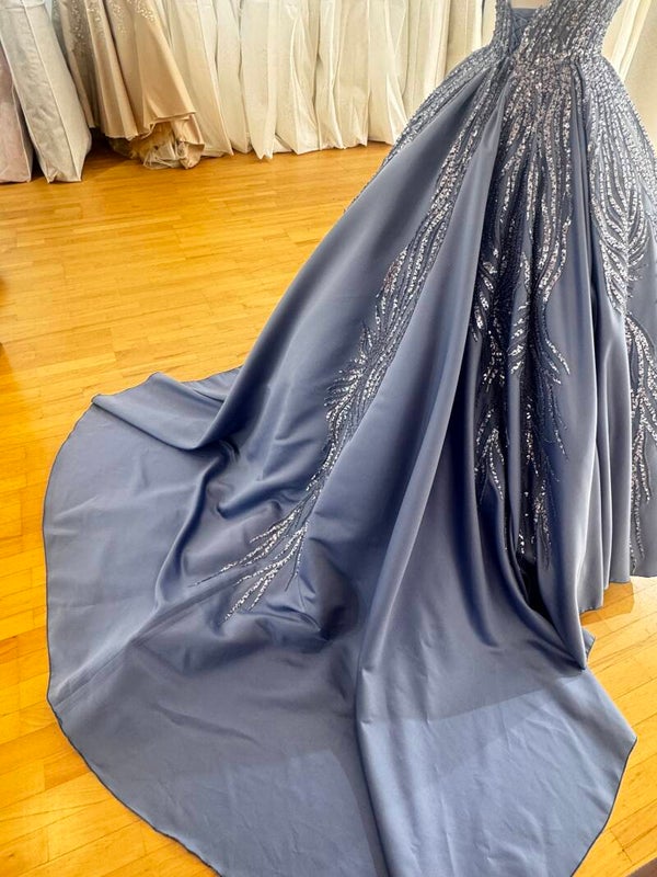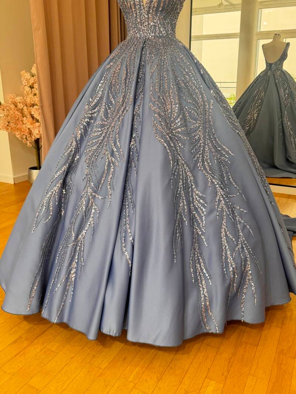 Verlobungskleid in Hellblau mit Paillettenstickerei